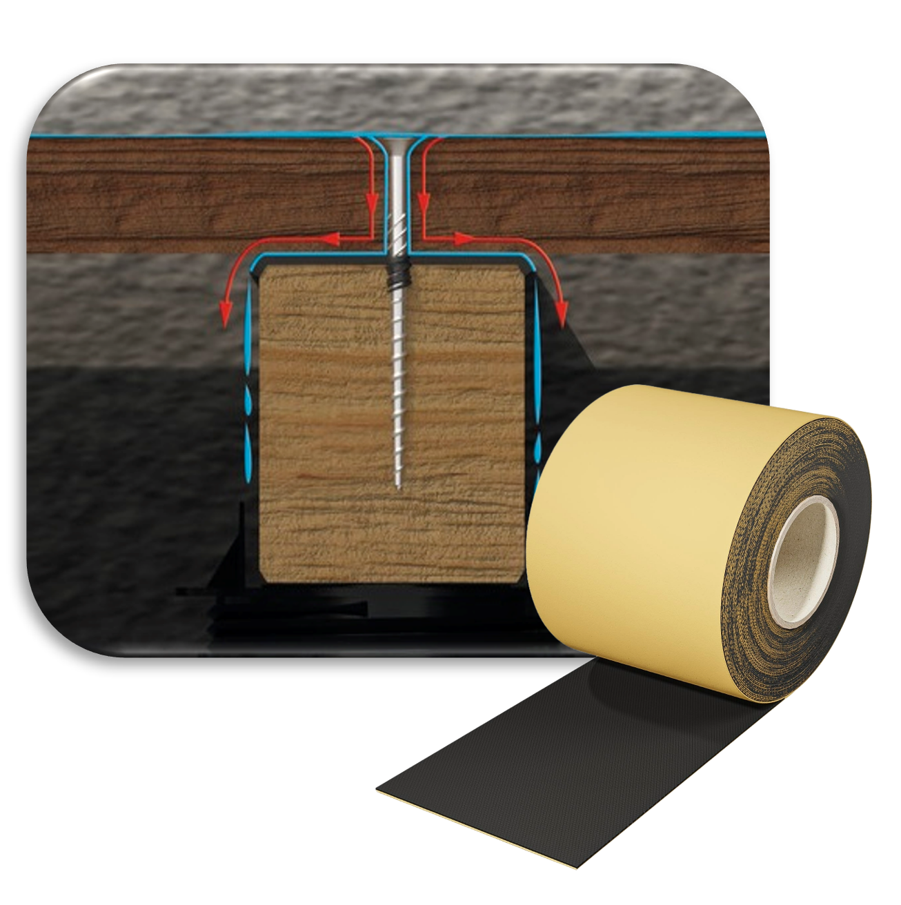 Līmējama terases konstrukcijas lenta karkasa aizsardzībai un ilgtspējai. Pasargā pamatkarkasu no mitruma slodzēm, neveido kondensātu, bet ļauj iztvaikot mitrumam. Izmantojami uz visa veida karkasiem (koka, metāla un alumīnija sistēmām). Var izmantot fasādēs- nav jāsaskavo.